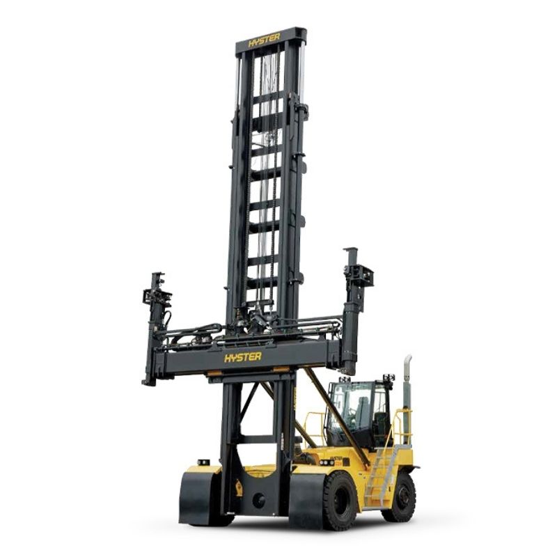 The H8XD-EC6 is equipped to navigate steep gradients with a climbing ability of 46%, making it versatile across various terrains. The forklift complies with Stage V emission standards, reflecting Hyster’s commitment to reducing environmental impact while maintaining high productivity. With a total weight of 35.5 tonnes and dimensions of 4110 mm in width, it ensures stability and performance. The machine also features an ergonomic design prioritizing operator comfort and safety, enhancing productivity in demanding work environments.